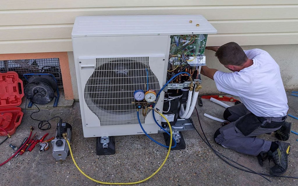 Après avoir tout branché et vérifié, le professionnel met la pompe à chaleur en marche et règle les paramètres pour qu’elle fonctionne correctement.